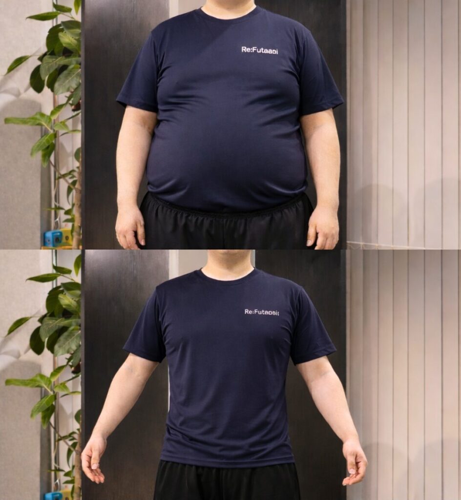 ご結婚式を控え、「もっと男らしくなりたい」という想いでFutatabiに通い始めたH様。運動から離れていた時期を経て、身体と向き合う日々は、自信や前向きな気持ちを取り… -